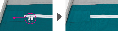 内側からファスナーを所定の位置まで引き込むことで外から開閉しづらくなります。