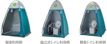 床生地をつけて更衣室等の個室として利用できる他に組立式トイレ・簡易トイレと組み合わせて使用することでプライバシー性を高めることができます。