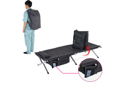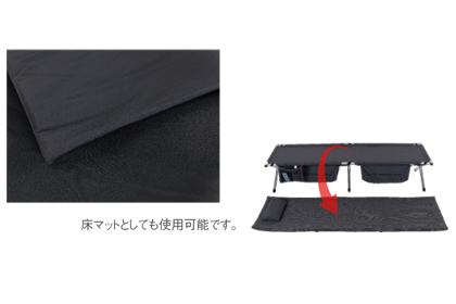 | 付属品 | ●リバーシブルマット1枚 ●ベッド下収納兼携行バッグ2個 ●枕(ピロー)1個 ●専用収納袋 ●取扱説明書1枚 |